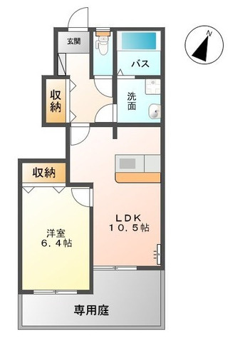 洋室 6.4帖 1室/LDK 10.5帖 1室 - 向き